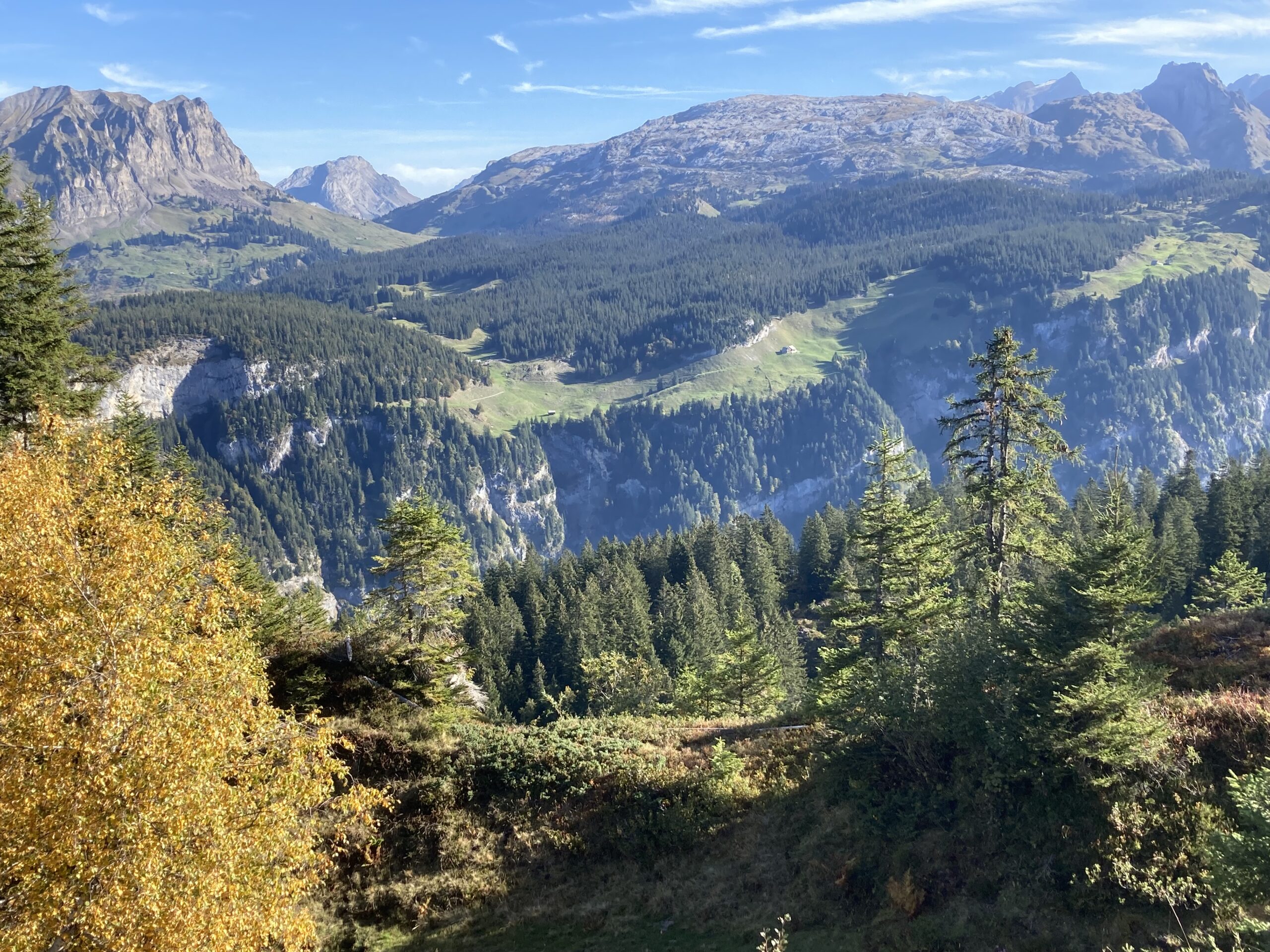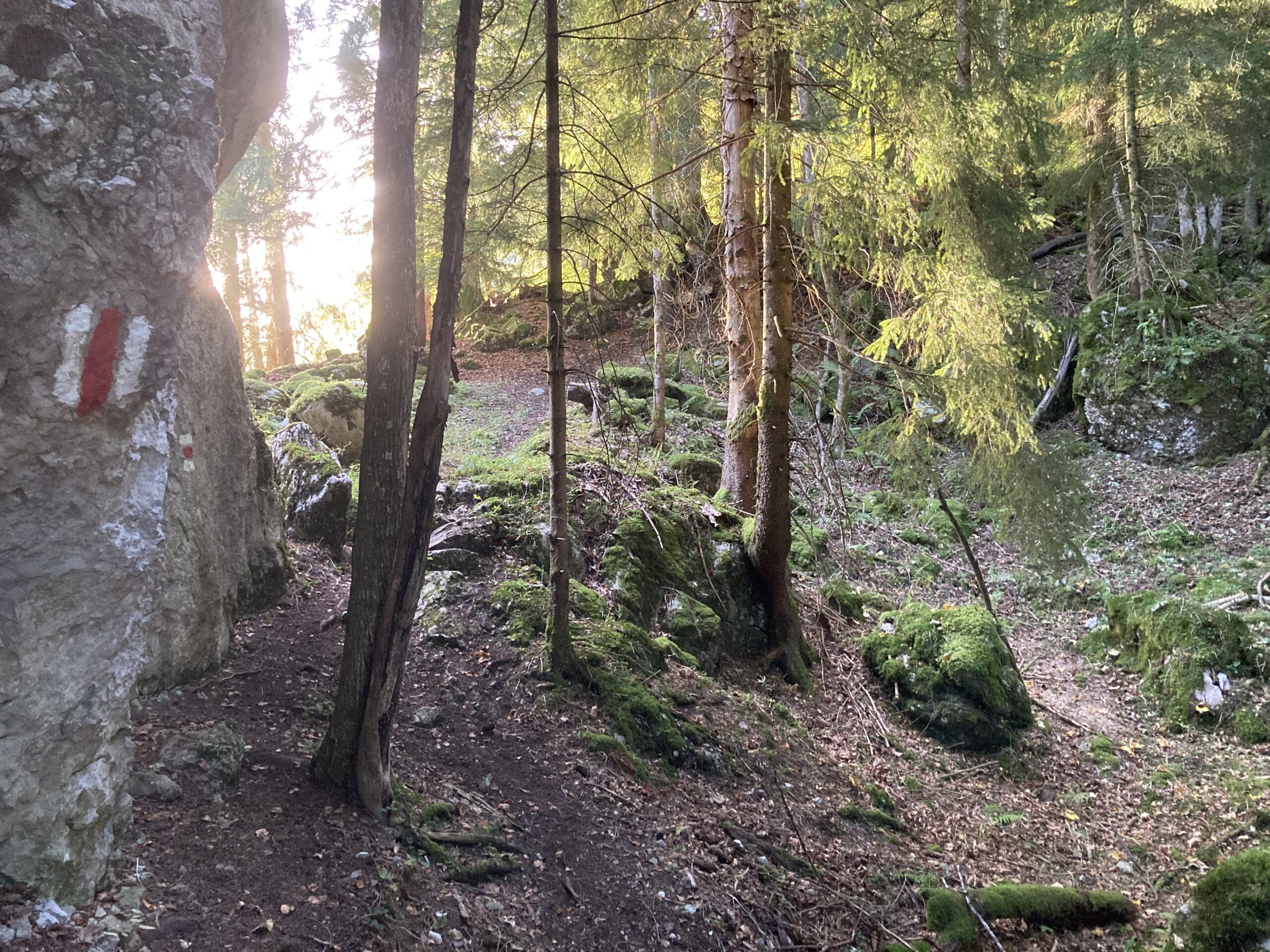 Anschliessend folgen wir dem Weg durch einen lockeren Wald übers Wegscheidli bis zum Dräckloch und weiter bis zur Hinderist Hütte.