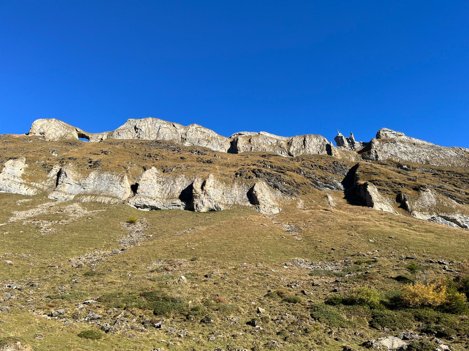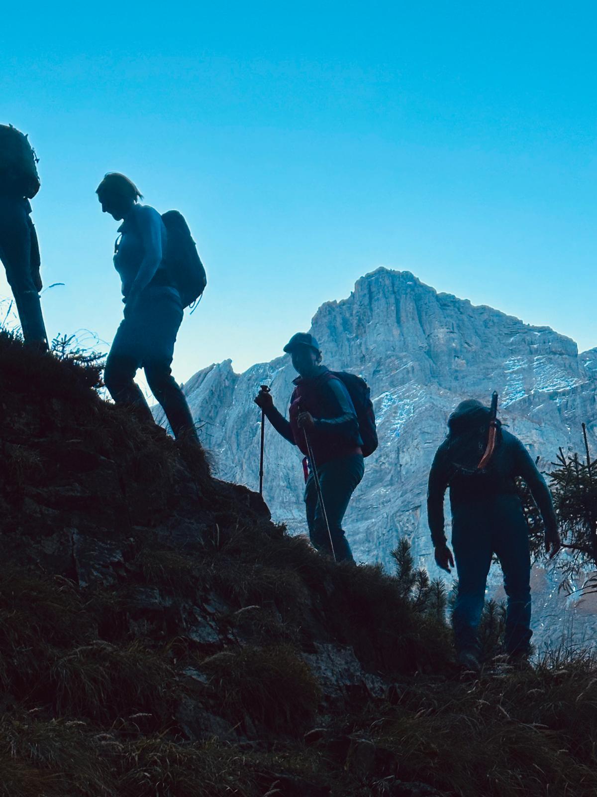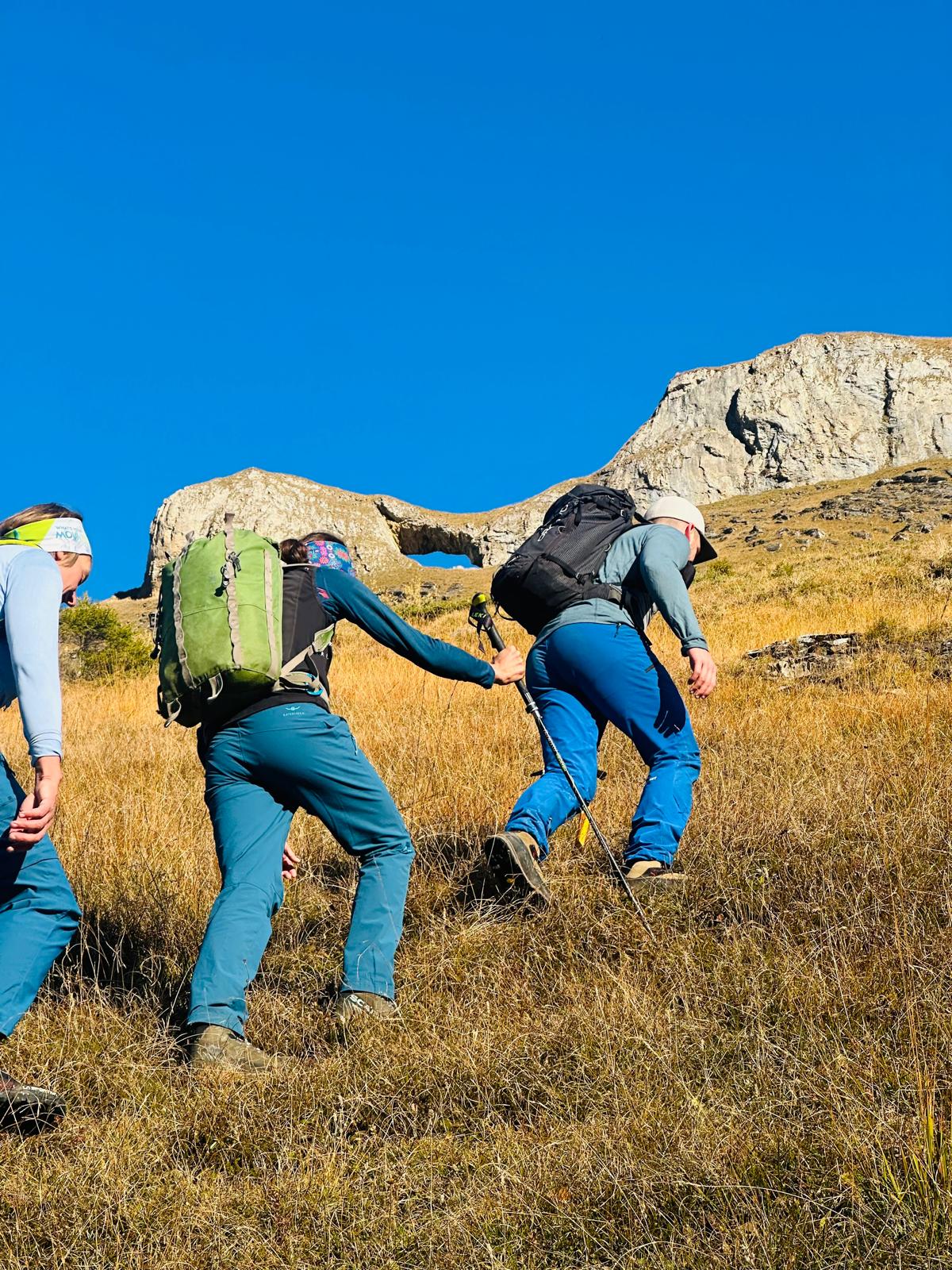 Nach dem Abstieg vom Zahnd gings über den Grat und trockene Grasplanggen weiter Richtung Bärenstock. Das Traversieren in diesen «Süübördern» war nicht ganz ohne und verlangte unsere vollste alpinistische Aufmerksamkeit. Alle meisterten diese Herausforderung aber bravourös und auf dem Bärenstock angekommen gab es allseits gegenseitige Gratulationen – was es zum Glück nicht gab war ein Bär.