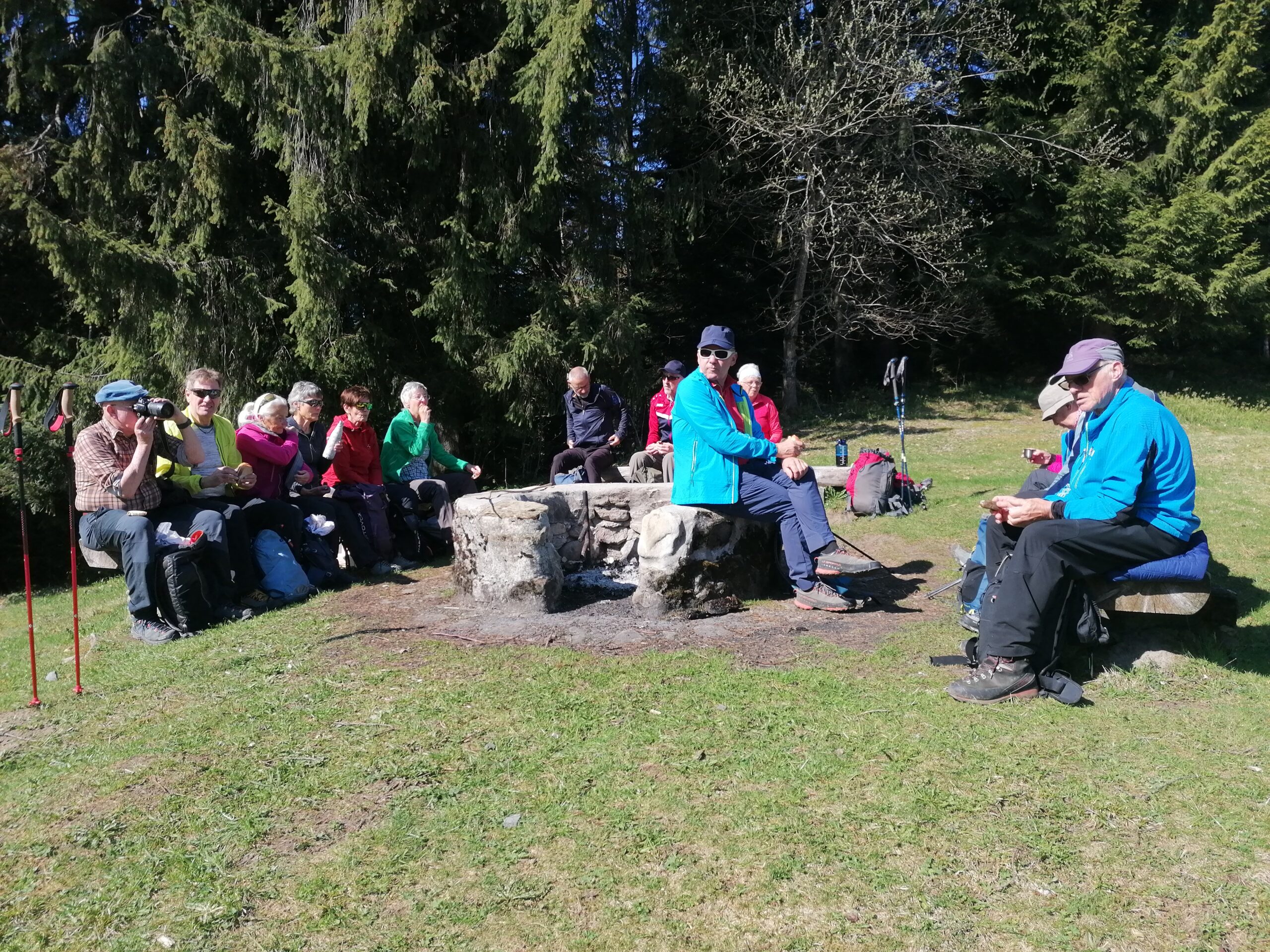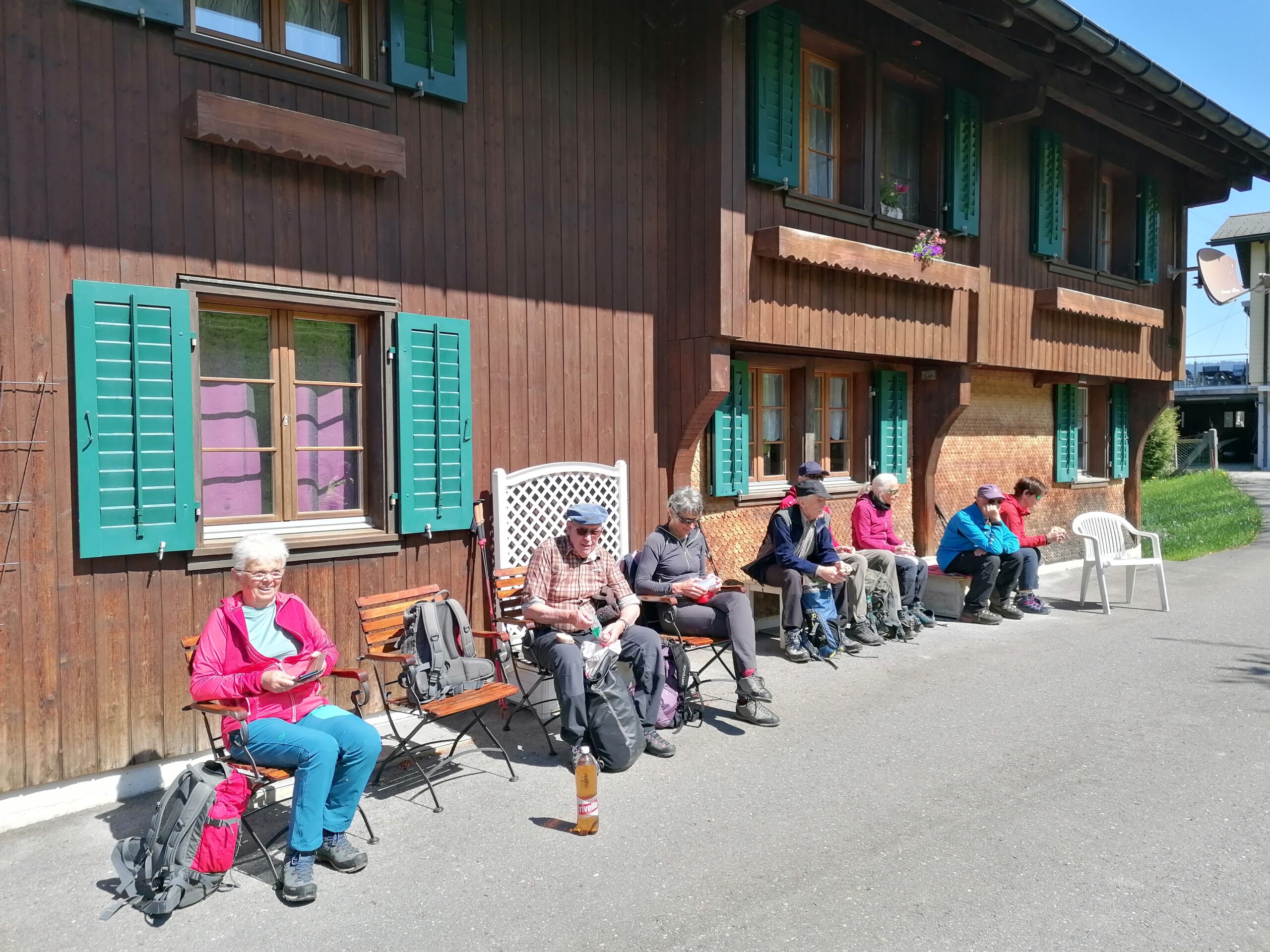 Nach einer kurzen Begrüssung und Info über den Verlauf der Wanderung fahren wir zum Campingplatz Naas. Dank des trockenen Waldweges über die Rapperenflue kommen gut voran. Beim Rastplatz „Rossallmig“ ist es auch Zeit zum Trinken und Verpflegung. Die Alpwirtschaft Brandhöchi, ein wunderschönes Plätzchen zum Verweilen, hat noch Wintersaison und für uns keinen begehrten Kaffee bereit. Die Bise bläst kräftig über die kleine Hochebene und beschert uns eine gute Fernsicht. Wir ziehen des Weges weiter Richtung Westen und beginnen mit dem Abstieg nach Resti. So nebenbei fragte ein Teilnehmer, dem Schreiber bekannt und ich nenne ihn Beatus, ob das Standart für eine Veteranentour sei. „Zuerst steil aufwärts, oben auf der Höhe kalter Biswind und danach wieder steil abwärts“. Natürlich, ist bei den Veteranen so. Auf einer Nebenstrasse kommt mir ein Bauer mit seinem Reformtraktor gerade recht. Wo ist das nächste offene Beizli für einen Kaffee? Schwierig, aber nur äs Kafi chan ich üch au machä. Ich wohnä grad da unnä. Vor dem denkmalgeschützten Bauernhaus machten wir es uns gemütlich. Trinken Kaffee und etwas Rivella. Der Zwipf wird dem Rucksack entnommen. Die Sonne trug ihres dazu bei. Nach ausgedehnter Rast geht es weiter nach Wilbrunnen und dem Ägerisee entlang zurück zum Campingplatz Naas, wo wir unsere Autos parkiert haben.
